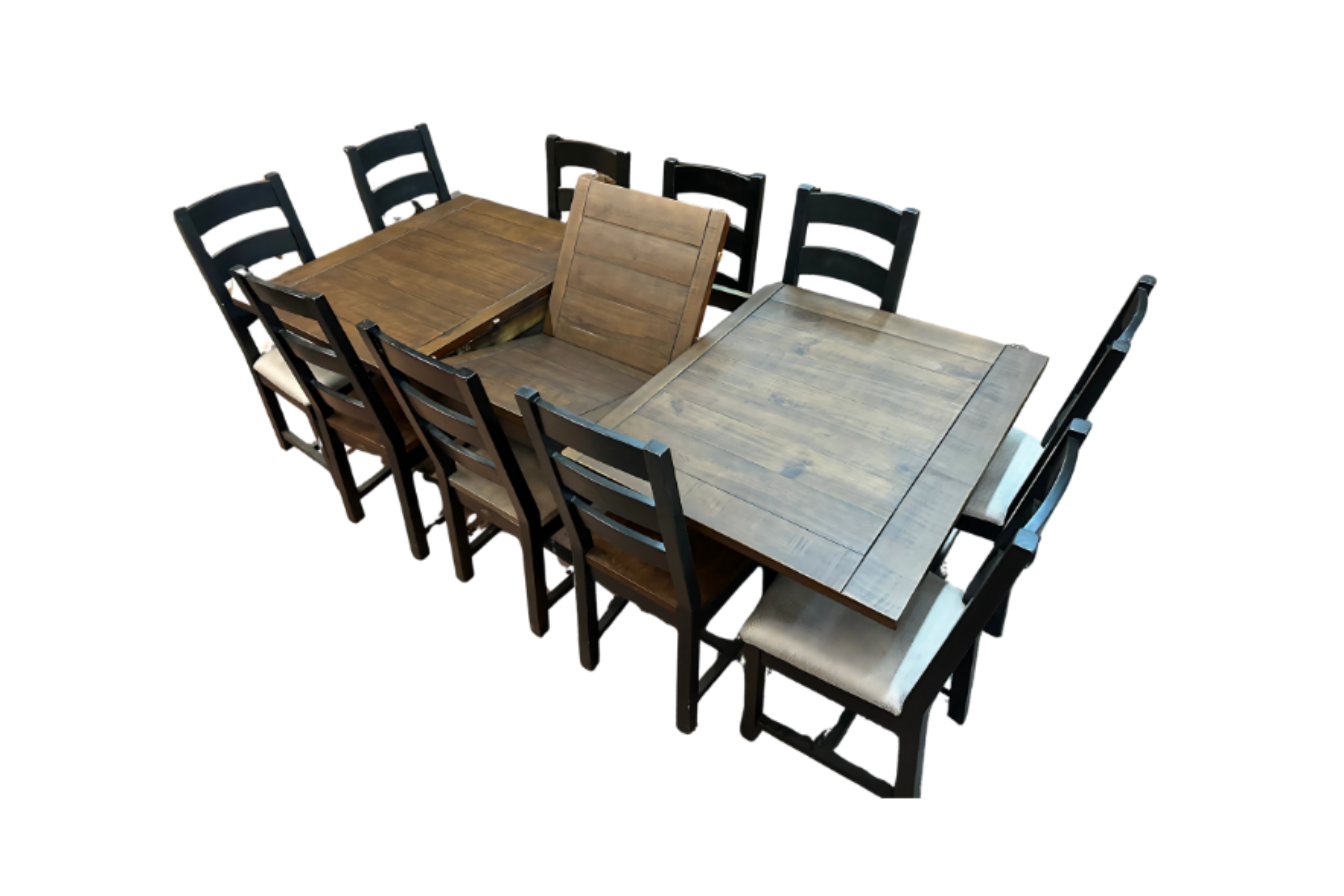Large Butterfly Collection Medium Brown top and Base and 6 Ladderback chairs with Medium Brown frames and cushion seats
