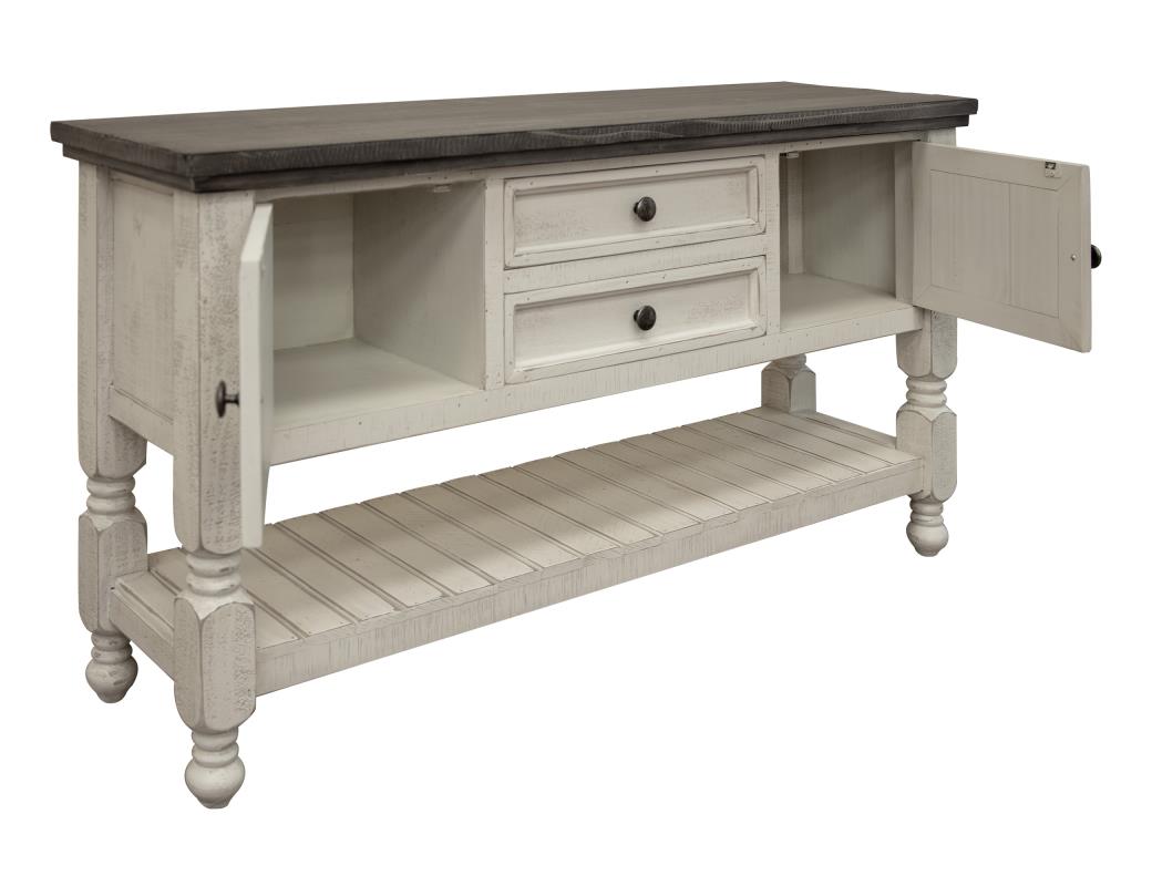 Exuding farmhouse chic with just the right touch of old-world charm, the Stone Collection is meticulously crafted from solid pine wood. The wood is lightly distressed, showcasing a white finish and complemented by weathered gray tops.