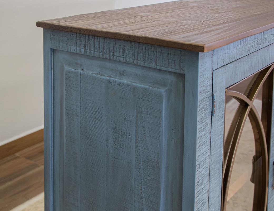 Introducing the Marlin console, expertly crafted from solid pine wood. This accent console boasts a distinctive, clean-lined design, skillfully finished in a bold tone that elevates it to the status of a statement piece for your room.