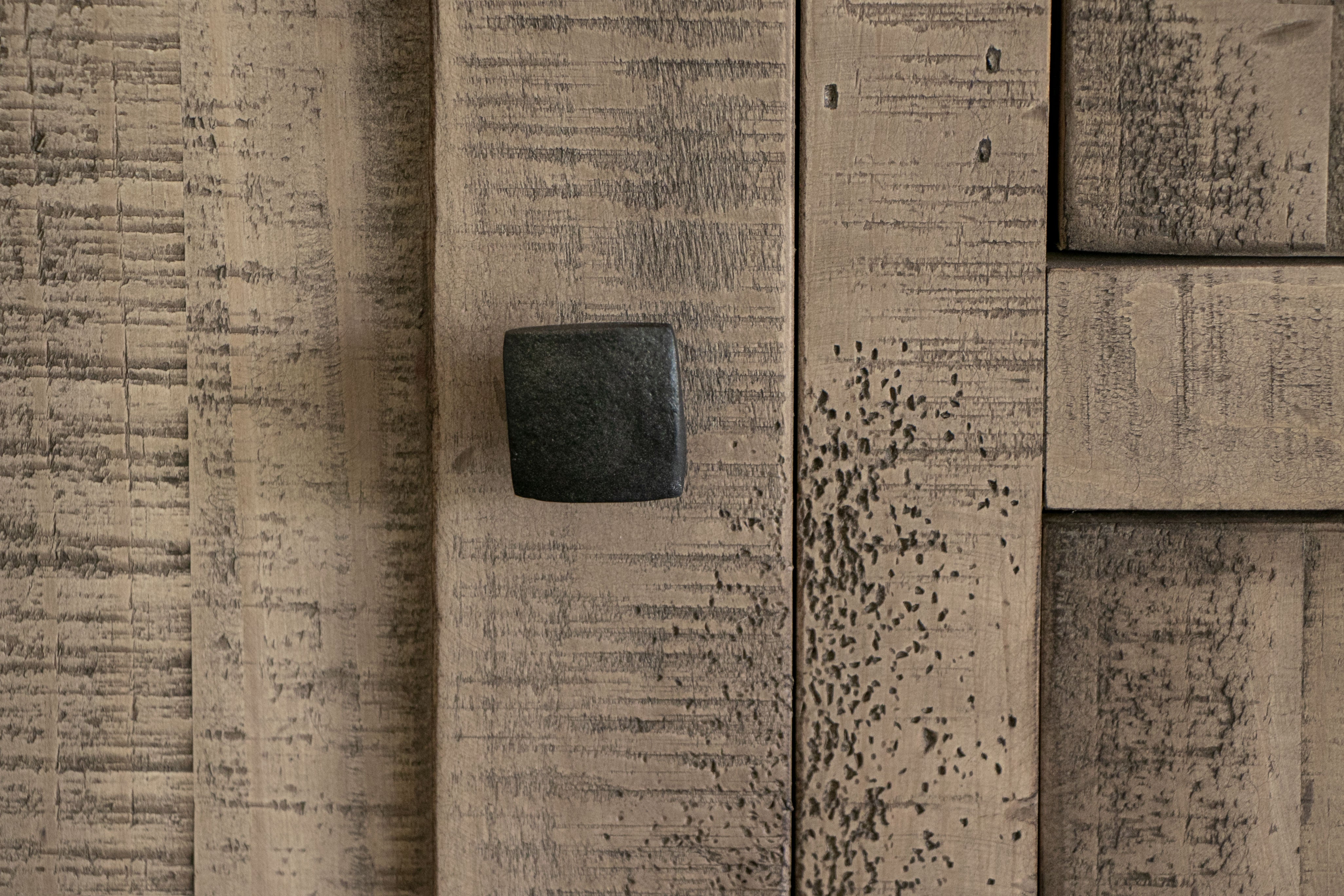 Solid pine chest with a multi-step lacquer finish with hand-rubbed highlights for a light brown finish. Knots on the solid wood surface are a natural marking that make each piece of lumber unique, wormholes effect add character without affecting the integrity of the wood.