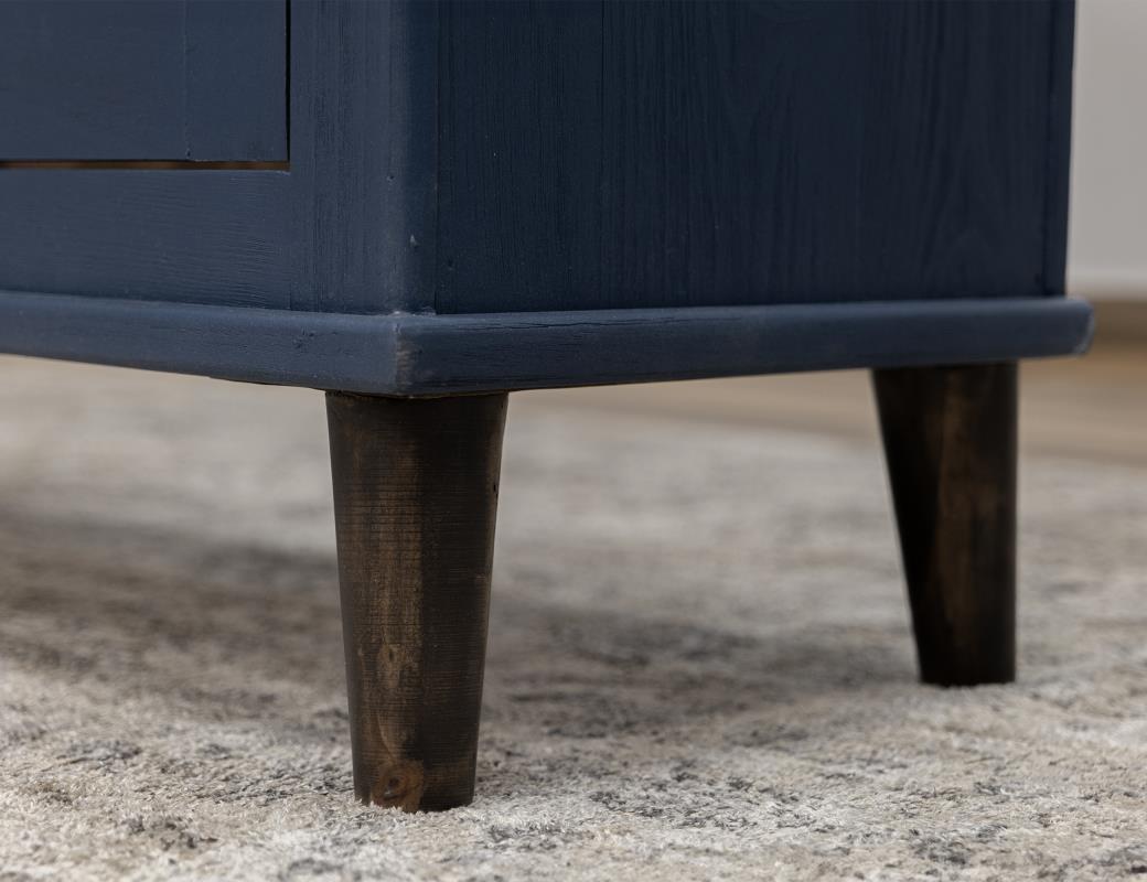 The Genova consoles crafted from lightly distressed pine and okume wood provide a contemporary twist on mid-century aesthetics, with vibrant colors perfect for complementing monochromatic spaces or adding a splash of vividness. They are guaranteed to be showstoppers in any room.