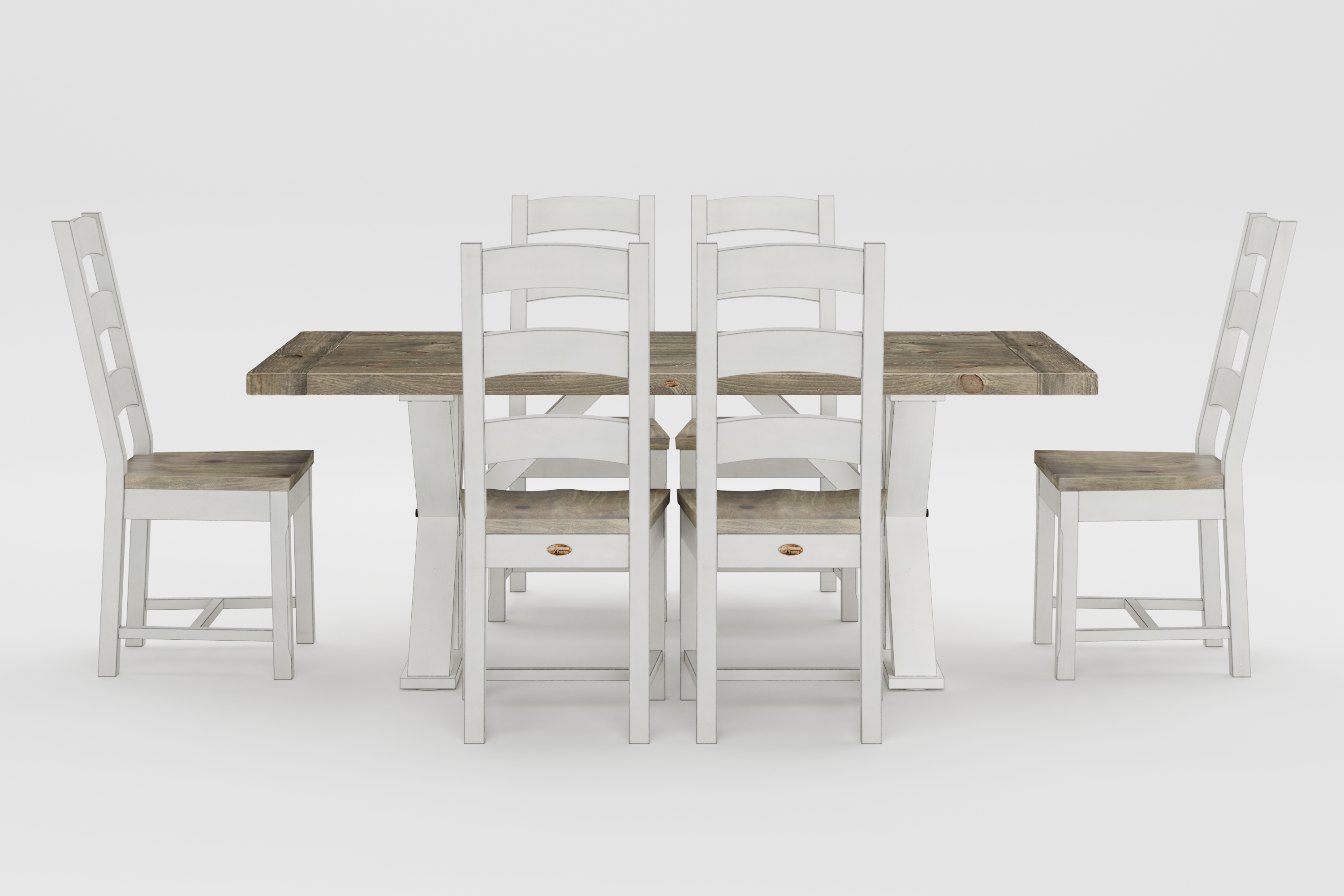 America Collection Medium Brown 40" x 77" with Linen Wood x Base and 6 Ladderback chairs with Linen frames and medium brown seats