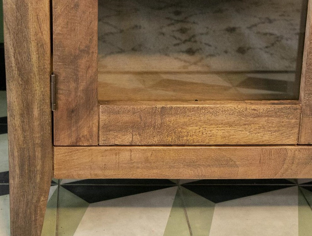 This console, drawing inspiration from organic design principles, is meticulously fashioned from sustainable wire-brushed mango wood and impeccably finished in a natural wood tone.