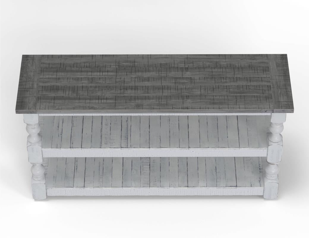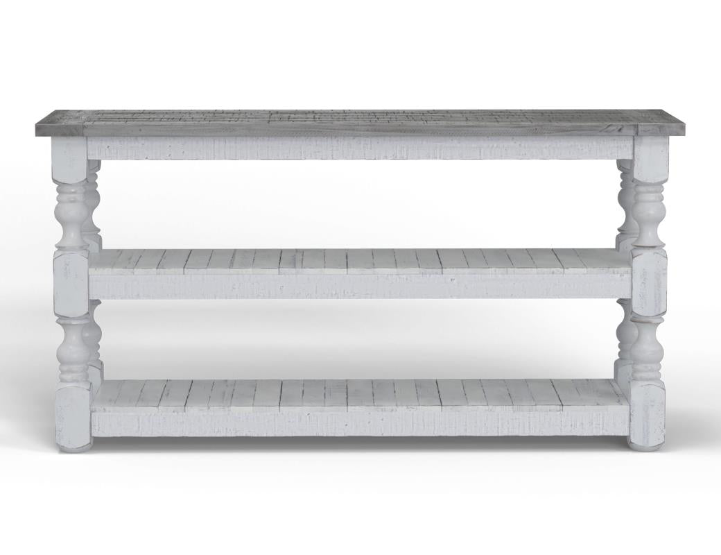 Exuding farmhouse chic with just the right touch of old-world charm, the Stone Collection is meticulously crafted from solid pine wood. The wood is lightly distressed, showcasing a white finish and complemented by weathered gray tops.
